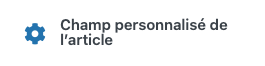 Une fois les données entrées dans les champs d’une fiche, on voudra les utiliser quelque part, que ce soit dans un modèle de page ou dans un modèle de grille (dans le menu de gauche de WordPress: *Nom du site* > Grilles). Pour aller chercher les valeurs saisies dans chaque champ et ainsi créer une disposition qui sera empruntée par chaque fiche pour afficher son contenu, nous aurons besoin du bloc Champ personnalisé de l’article (autant dans le Page Builder que dans l’éditeur de modèles de Grilles).