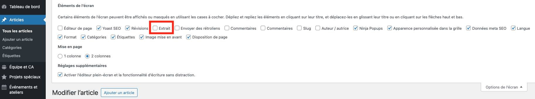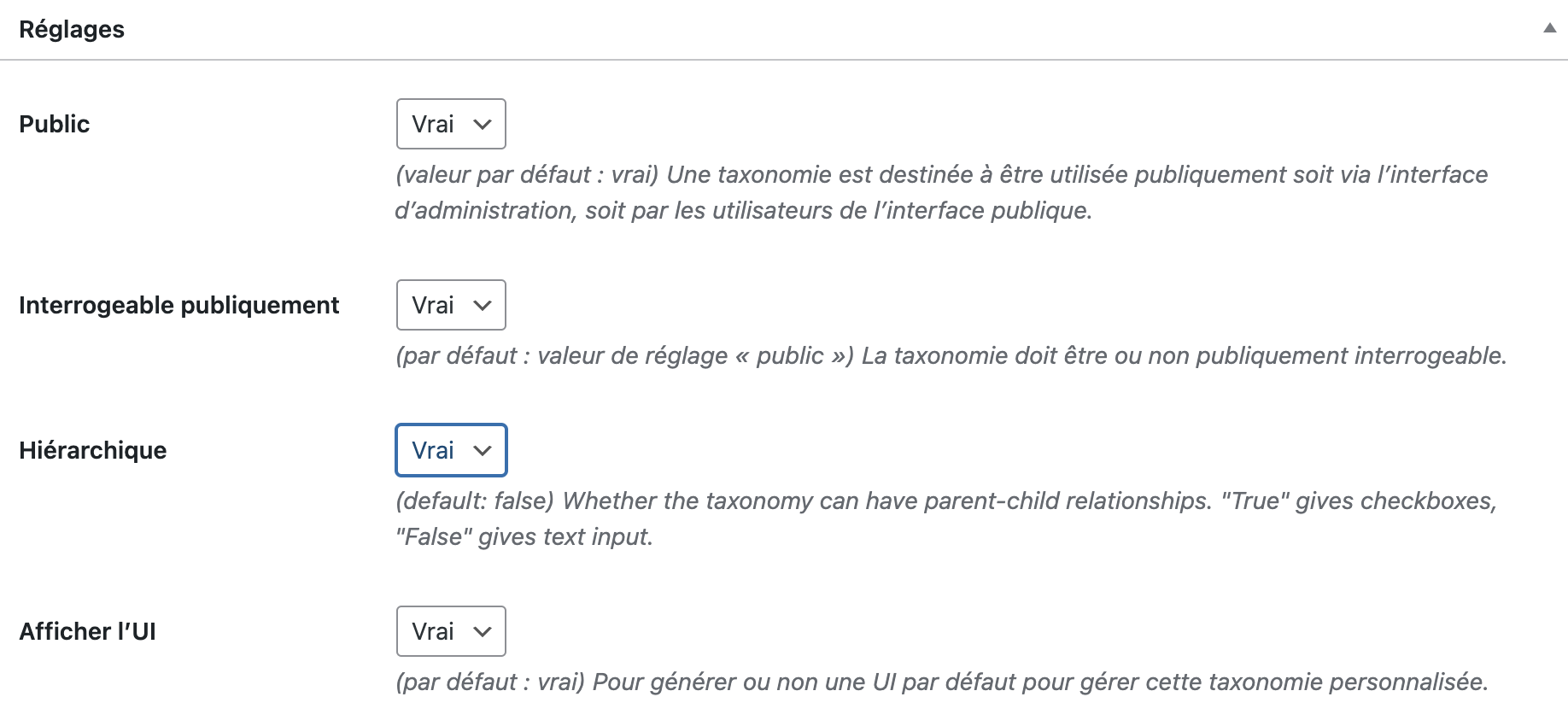 - Finalement, cocher les taxonomies nécessaires dans le bas de la page.