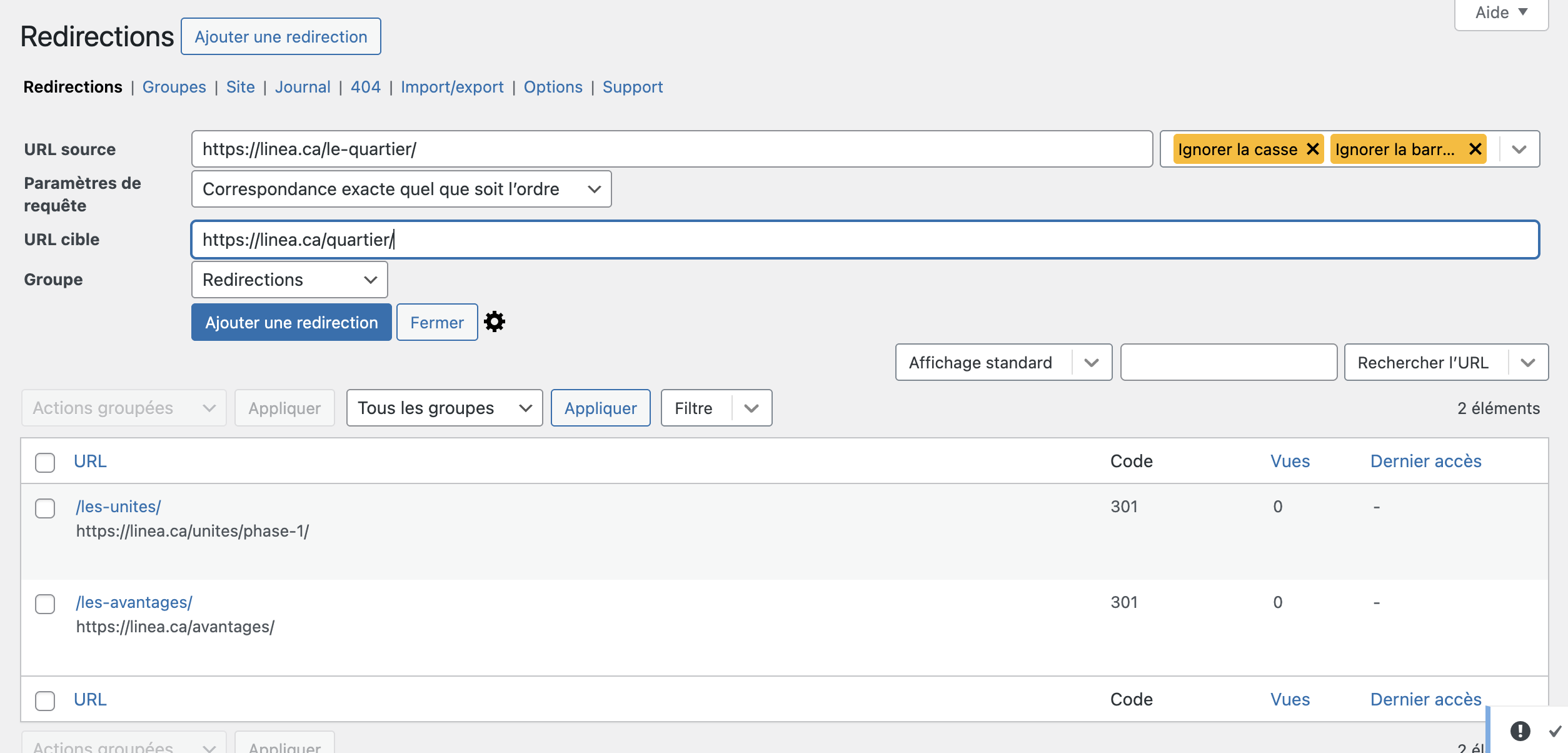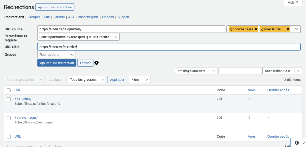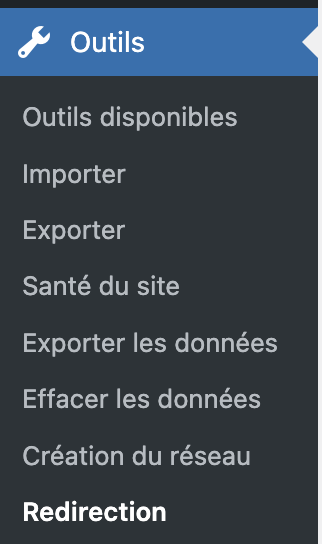 Installer le plugin Redirections par John Godley. Il va se retrouver dans le menu latéral de WordPress, sous l’onglet Outils.