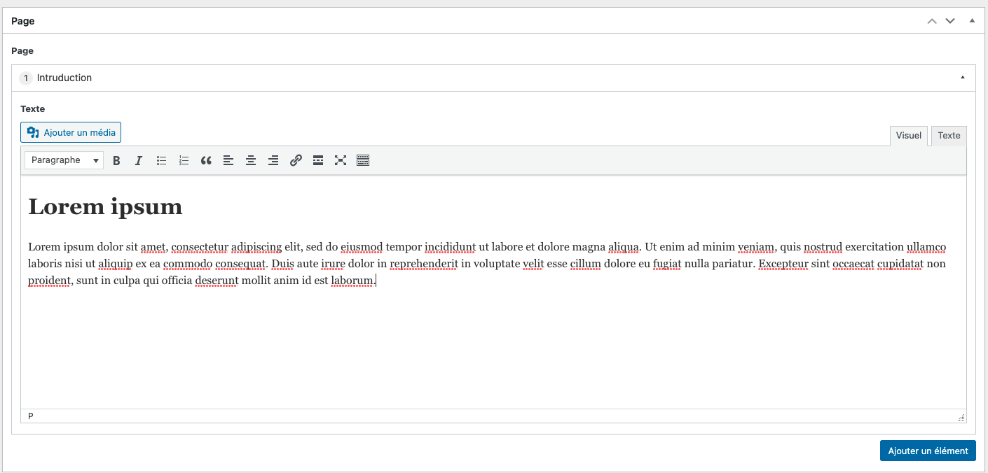C’est dans ce contenu flexible que toutes les sections du site web se retrouveront afin que les clients puissent utiliser n’importe quelle section dans n’importe quelle page. Cela implique de garder en tête que les sections doivent toutes être compatibles les unes avec les autres, pour garder une flexibilité et une autonomie maximum pour les clients.