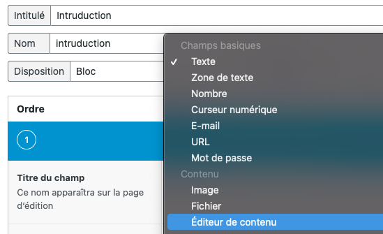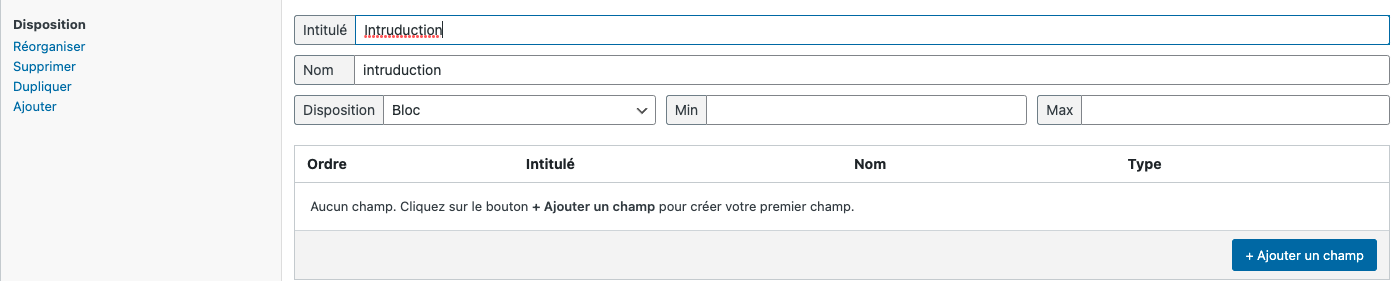 Ces étapes expliquent la marche à suivre avec Momentum, mais vous devez tout de même maîtriser les types de champs ACF pro en consultant la documentation de ce dernier.