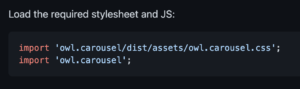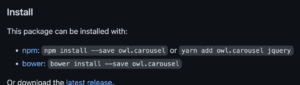 Étape 1 : Trouvez une librairie que vous voudriez ajouter à votre projet. Exemple : https://github.com/OwlCarousel2/OwlCarousel2 Owl Carousel (Une alternative à Swiper Slider). Veuillez bien lire leur documentation et tentez de trouver comment installer le module avec NODE (npm).