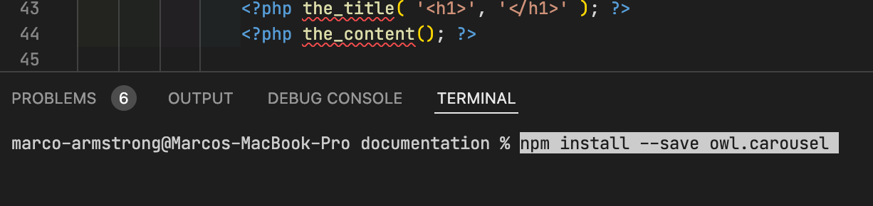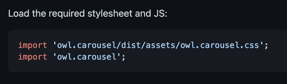 Étape 1 : Trouvez une librairie que vous voudriez ajouter à votre projet. Exemple : https://github.com/OwlCarousel2/OwlCarousel2 Owl Carousel (Une alternative à Swiper Slider). Veuillez bien lire leur documentation et tentez de trouver comment installer le module avec NODE (npm).